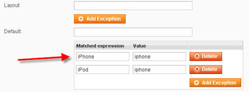 如果需要对个别设备做responsive web design,那么Magento 提供了一个 Design Exception 实现