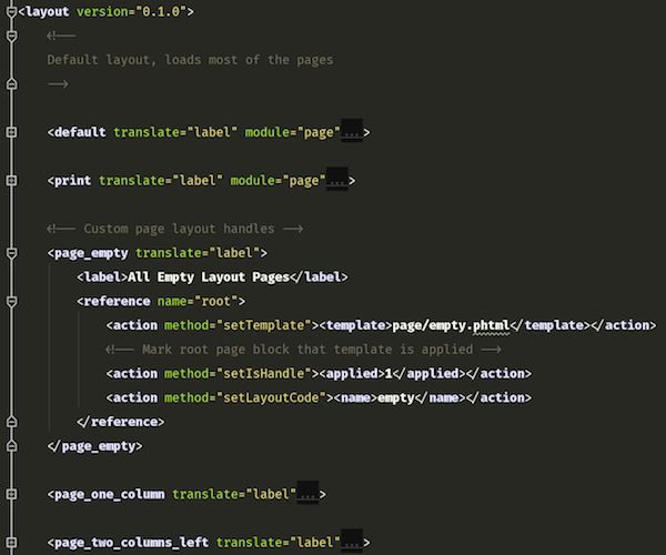 上图是layout/page.xml 截图,default 的内容在每个页面都会有,但是其他的handle 如print,page_empty 等等都是特定情况下才会触发。